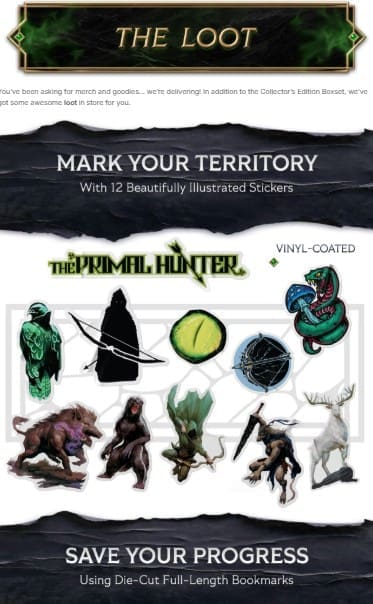 And not only that. People have been asking for merch and goodies for Primal Hunter forever… we’re delivering! In addition to the Collector’s Edition Boxset, we’ve got some awesome loot in store for you and incredible stretch goals.